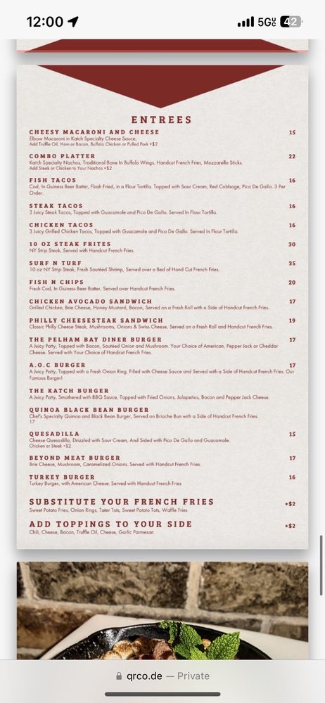 Katch Astoria is a vibrant beer garden offering a diverse menu of brunch and bar favorites in a casual, lively atmosphere. Located in Astoria, NY, the restaurant provides various amenities, from outdoor seating to valet parking, making it suitable for gatherings of all sizes. The St. Patrick's Day specials, like Corned Beef and Cabbage and Guinness Fish and Chips, showcase the establishment's creative take on traditional dishes. The brunch starters, such as Brunch Wagyu Beef Sliders and Brunch Fried Calamari, are sure to please a variety of palates. Customer reviews reflect a mix of opinions on service and ambiance, with compliments on the food quality and overall experience. I, too, found the outside patio enchanting and look forward to trying more dishes on a future visit to Katch Astoria.